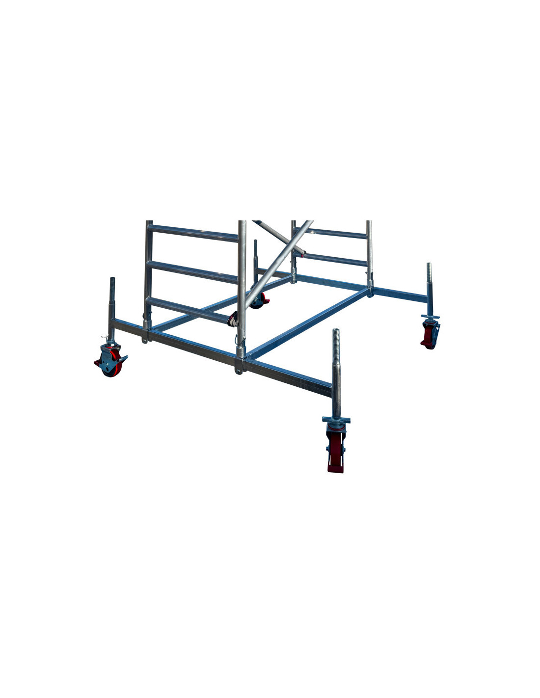 ✔ Koła o średnicy 200 mm – wyposażone w regulację wysokości oraz niezawodne hamulce, umożliwiające łatwe przemieszczanie oraz stabilne ustawienie rusztowania nawet na nierównym podłożu.
