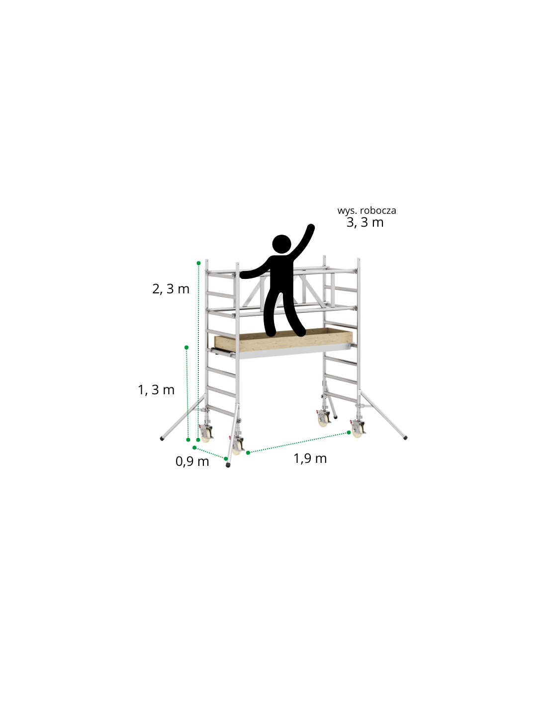 ✔ Podesty robocze – wykonane z wysokiej jakości sklejki antypoślizgowej, co zapewnia pewność kroków oraz minimalizuje ryzyko poślizgnięcia się.